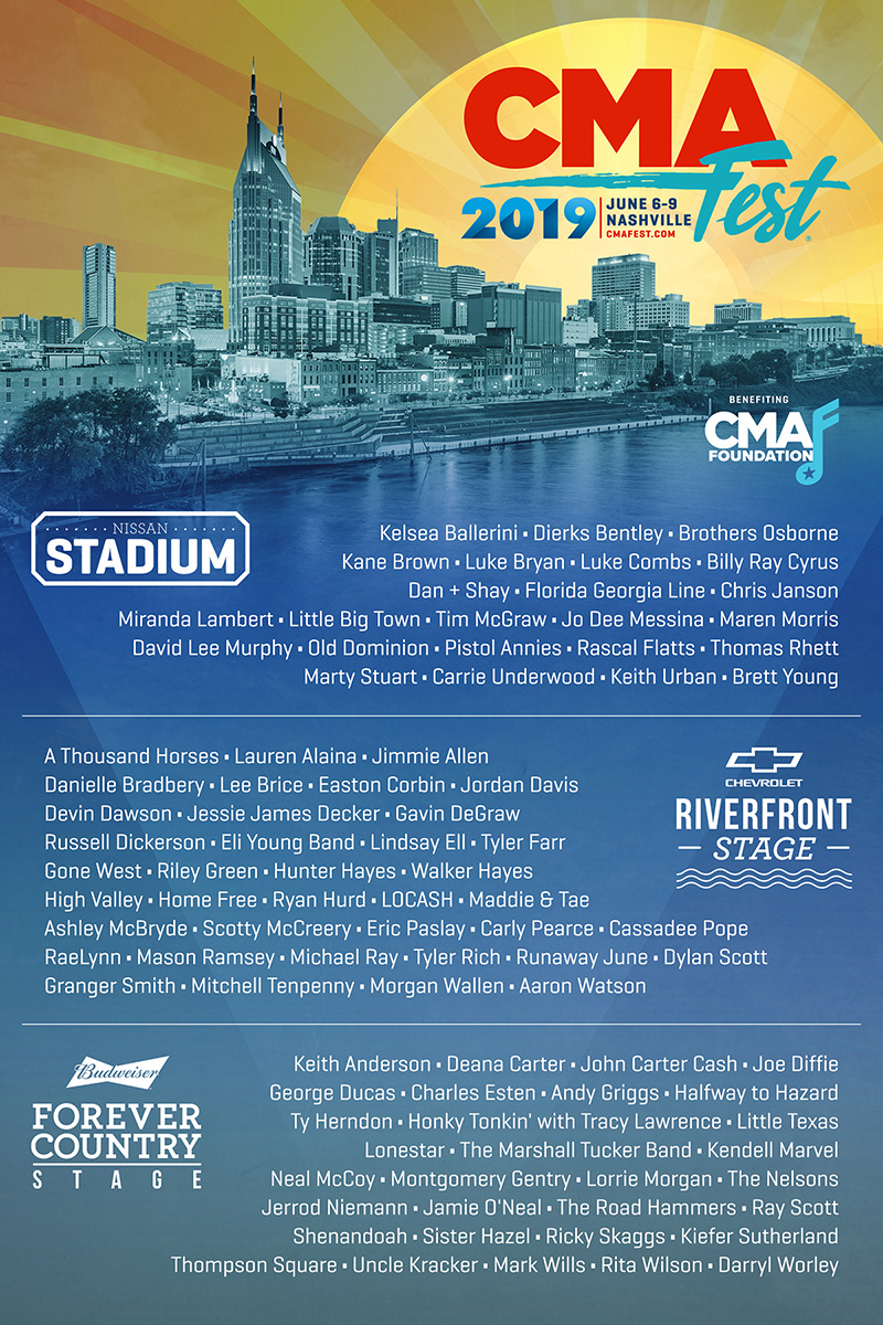 Previously announced Country Music superstars performing during the nightly concerts at Nissan Stadium include Kelsea Ballerini, Dierks Bentley, Brothers Osborne, Kane Brown, Luke Bryan, Luke Combs, Dan + Shay, Florida Georgia Line, Miranda Lambert, Little Big Town, Tim McGraw, Maren Morris, Old Dominion, Pistol Annies, Rascal Flatts, Thomas Rhett, Carrie Underwood and Keith Urban.