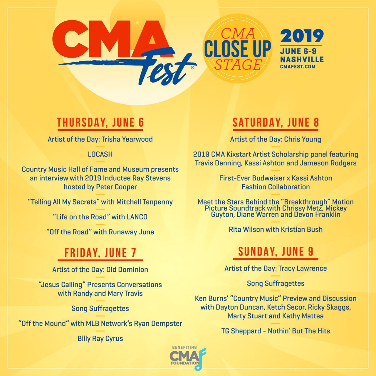 All stage lineups are available in the Official CMA Fest App. All artist lineups are subject to change.